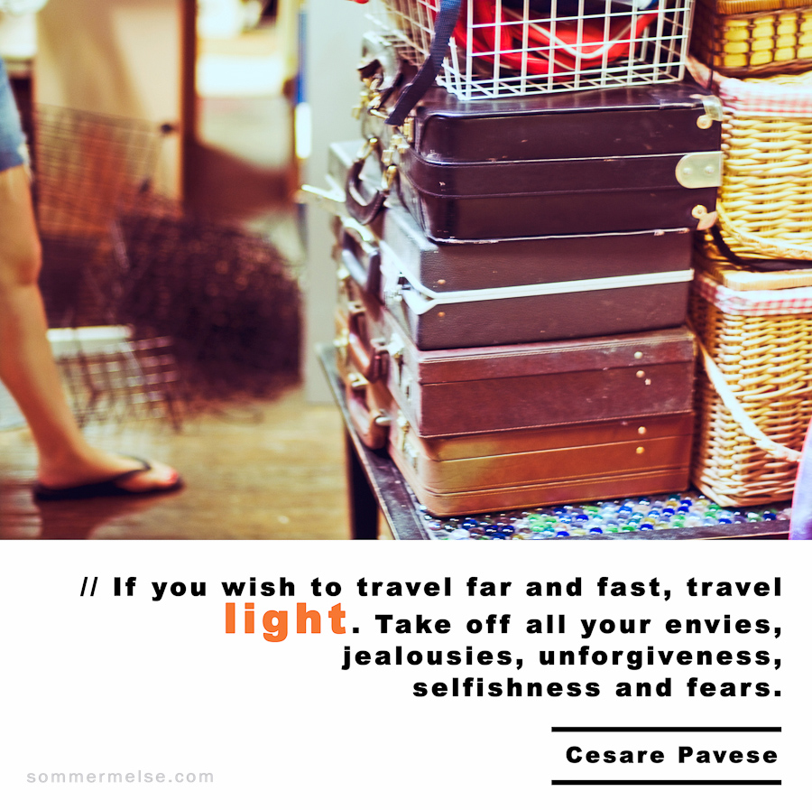 Quote // If you wish to travel far and fast, travel light. Take off all your envies, jealousies, unforgiveness, selfishness and fears – Cesare Pavese