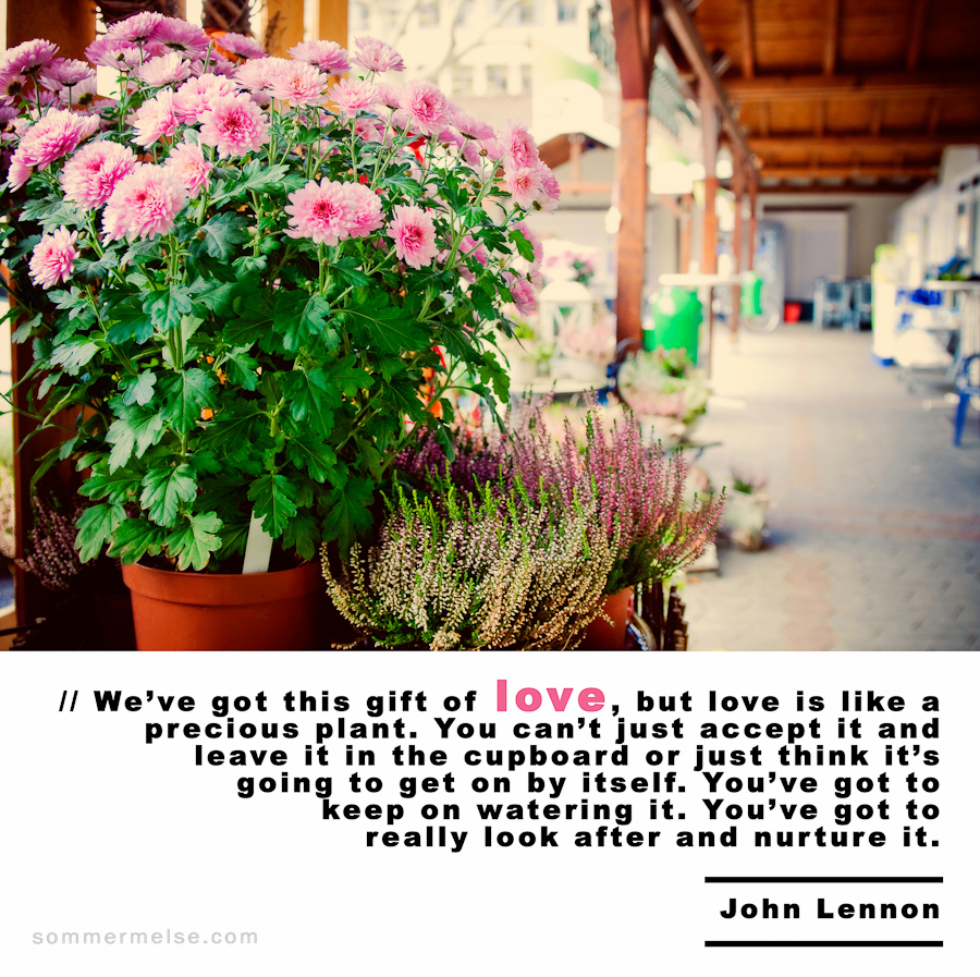 Quote // We’ve got this gift of love, but love is like a precious plant. You can’t just accept it and leave it in the cupboard or just think it’s going to get on by itself. You’ve got to keep on watering it. You’ve got to really look after and nuture it – John Lennon