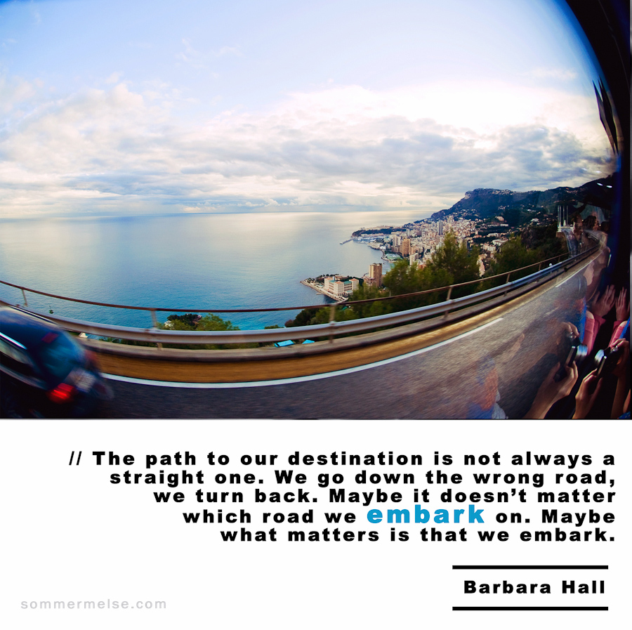 Visual Inspiration 365 - The path to our destination is not always a straight one - Barbara HallQuote // The path to our destination is not always a straight one. We go down the wrong road, we turn back. Maybe it doesn’t matter which road we embark on. Maybe what matters is that we embark – Barbara Hall