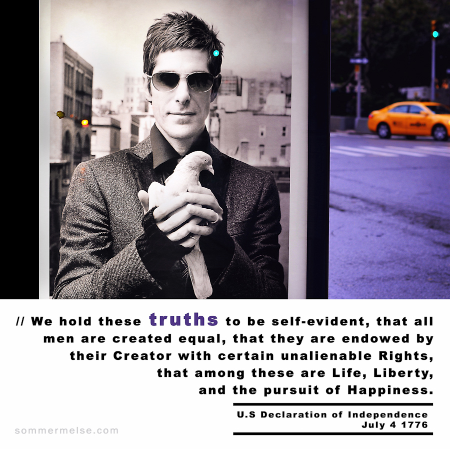 Quote // We hold these truths to be self-evident, that all men are created equal, that they are endowed by their Creator with certain unailenable Rights, that among these are Life, Liberty and the pursuit of Happiness – U.S Declaration of Independceenc