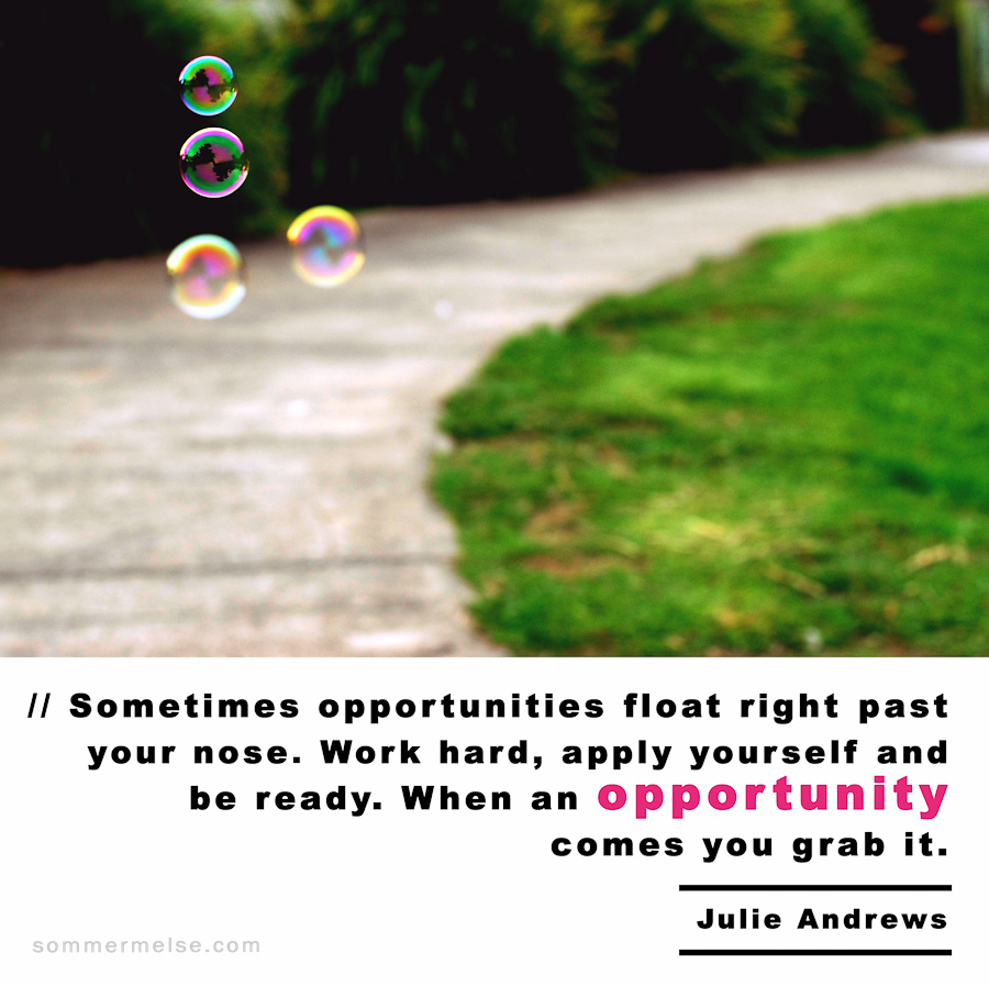 Quote // Sometimes opportunities float right past your nose. Work hard, apply yourself and be ready. When an opportunity comes you grab it – Julie Andews