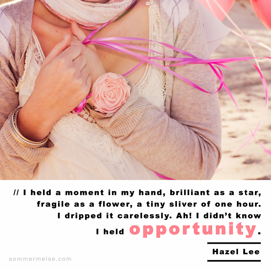 Quote // I held a moment in my hand, brilliant as a star, fragile as a flower, a tiny sliver of one hour. I dripped it carelessly. Ah! I didn’t know I held opportunity – Hazel Lee
