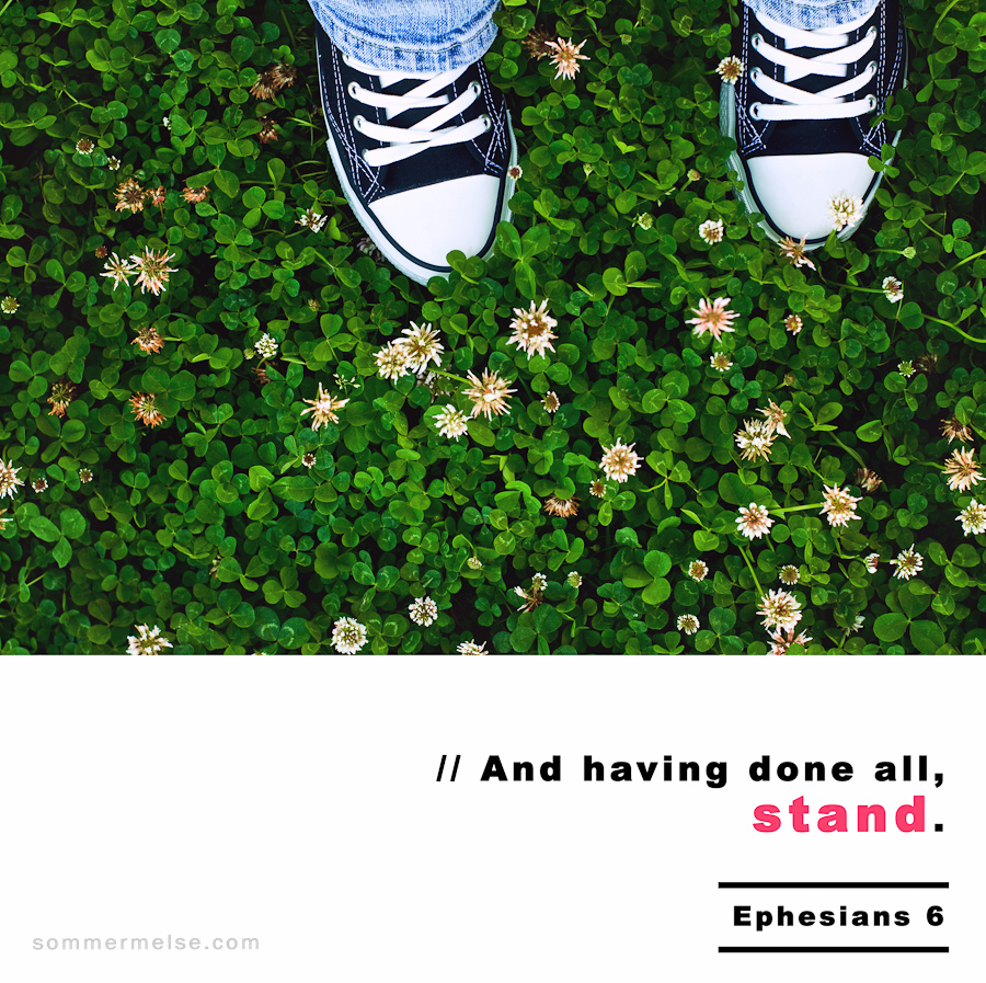Quote // And having done all, stand – Ephesians 6 August 16, 2010 by sommer | 1 Comment 1 Comment on Visual Inspiration 365 // 153 Sara August 16, 2010 at 11:19 am (16 years ago) So relivant today 🙂 Reply Leave a Reply Cancel replyYour email address will not be published. Required fields are marked *Comment *Name* Email * Website