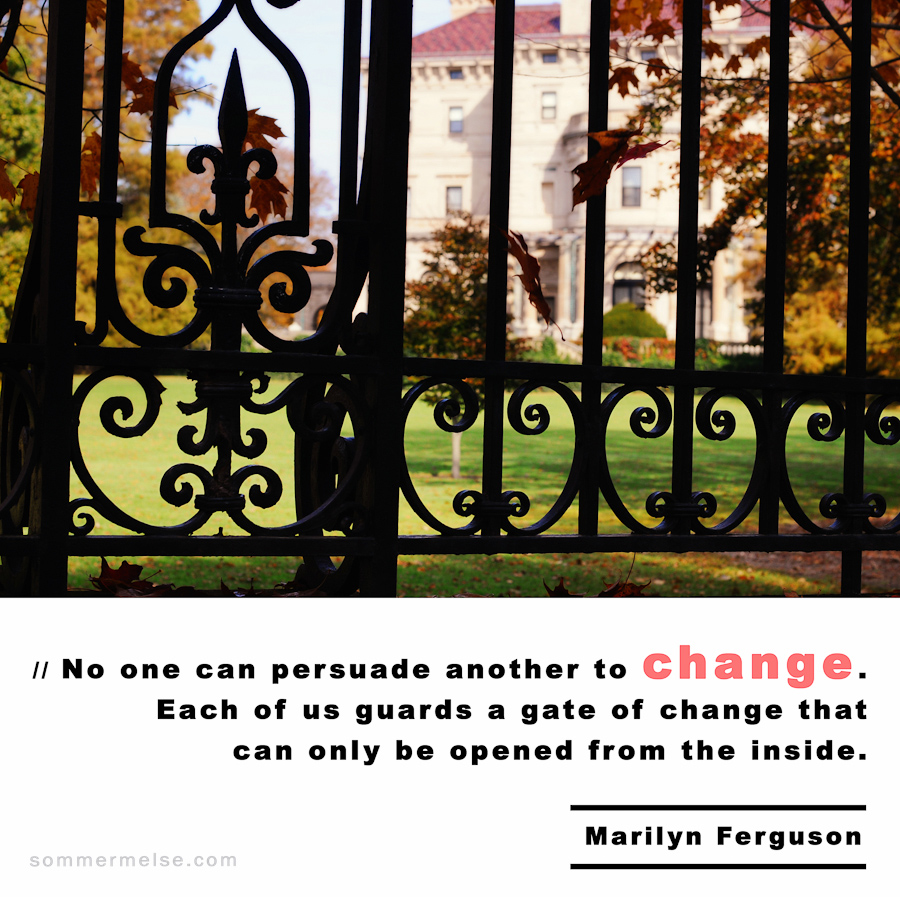 Quote //  No one can persuade another to change. Each of us guards a gate of change that can only be opened from the inside – Marilyn Ferguson