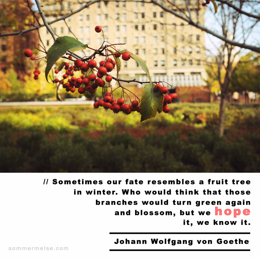 Quote // Sometimes our fate resembles a fruit tree in winter. Who would think that those branches would turn green again and blossom, but we hope it, we know it – Johann Wolfgang von Goethe