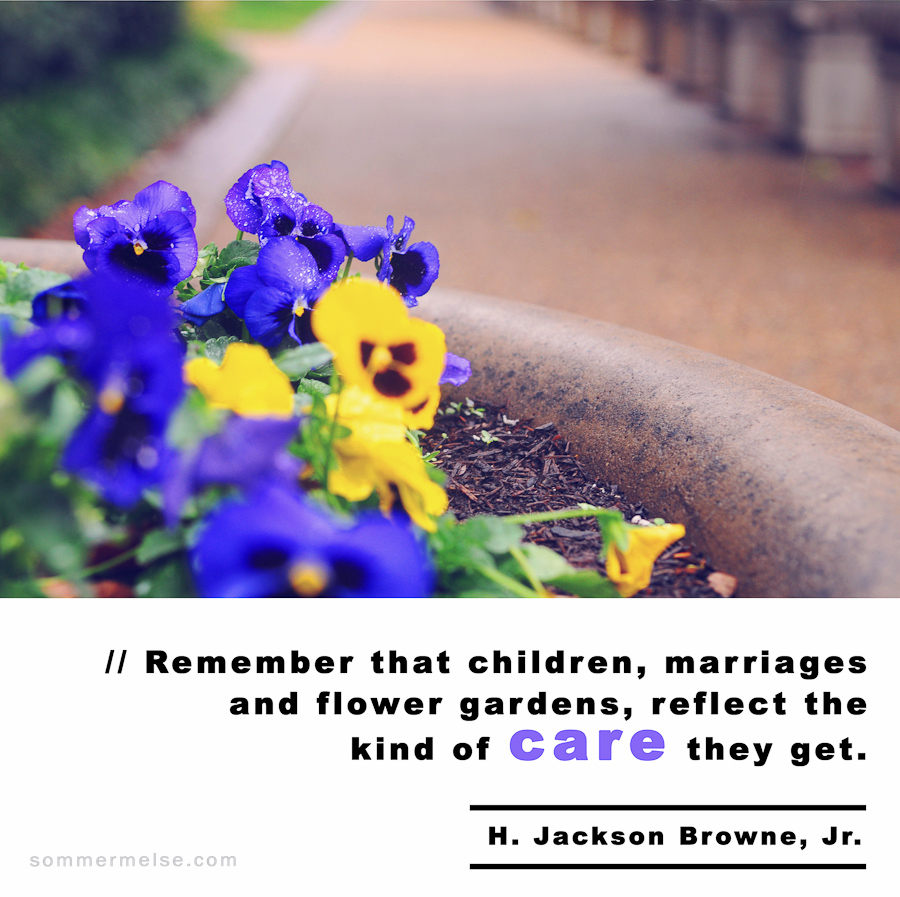 Quote // Remember that children, marriages and flower gardens reflect the kind of care they get – H. Jackson Browne, Jr.