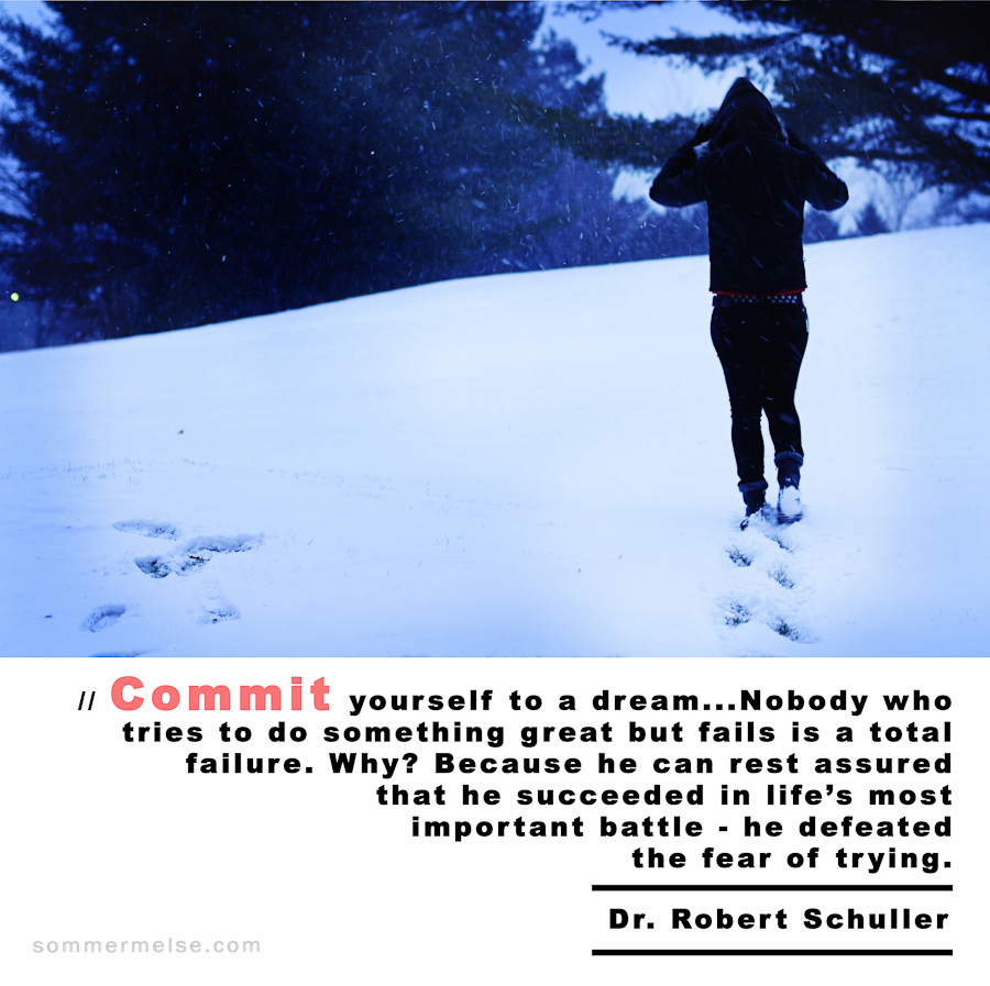 Quote //  Commit yourself to a dream….Nobody who tried to do something great but fails is a total failure. Why? Because he can rest assured that he succeeded in life’s most important battle – he defeated the fear of trying – Dr. Robert Schuller