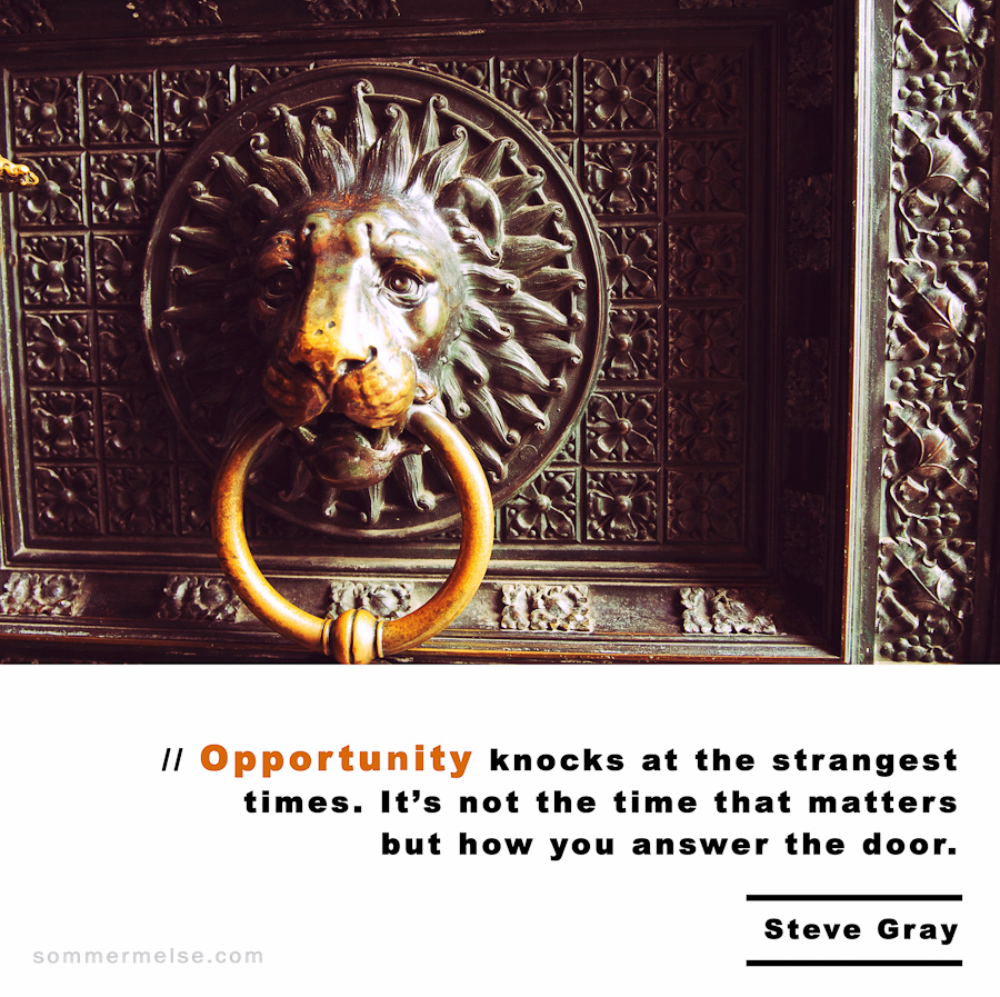 Quote // Opportunity knocks at the strangest times. It’s not the time that matters but how you answer the door – Steve Gray