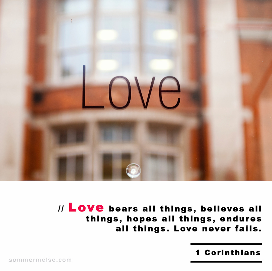 Visual Inspiration 365 - Love bears all things, believes all things - CorinthiansQuote // Love bears all things, believes all things, hopes all things, endures all things. Love never fails – 1 Corinthians