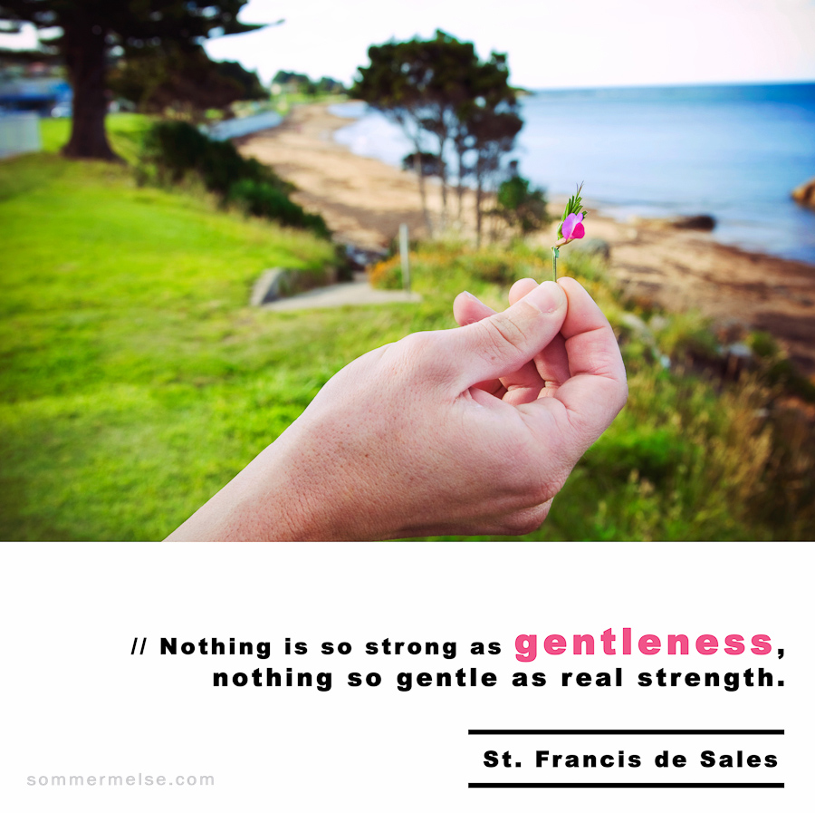 Quote // Nothing is so strong as gentleness, nothing so gentle as real strength – St Francis de Sales December 29, 2010 by sommer | 0 comment Leave a Reply Cancel replyYour email address will not be published. Required fields are marked *Comment *Name* Email * Website