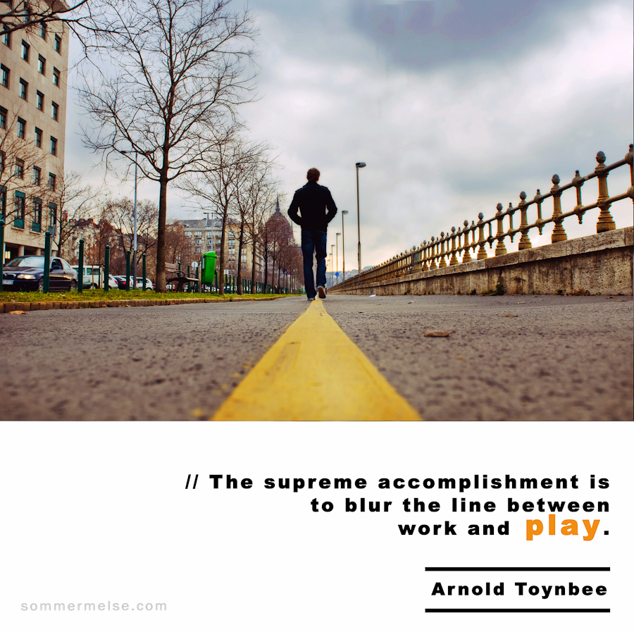 Quote // The supreme accomplishment is to blur the line between work and play – Arnold Toynbee January 16, 2011 by sommer | 2 Comments 2 Comments on Visual Inspiration 365 // 306 beckharro January 17, 2011 at 5:06 pm (15 years ago) oh wow. i love this picture. is this your man? Reply Sommer January 17, 2011 at 7:04 pm (15 years ago) Awww thanks Beck, it’s taken in Budapest Hungary! and yaaaaahhhh………it’s my man 😀 bahaha he is very kind and patient with me when I make him be my model for shots like these 😉 Reply Leave a Reply Cancel replyYour email address will not be published. Required fields are marked *Comment *Name* Email * Website