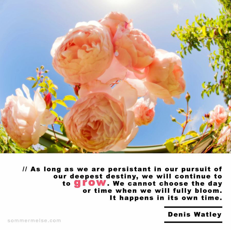 Quote // As long as we are persistant in our pursuit of our deepest destiny, we will continue to grow. We cannot choose the day or time when we will fully bloom. It happens in its own time – Denis Watley