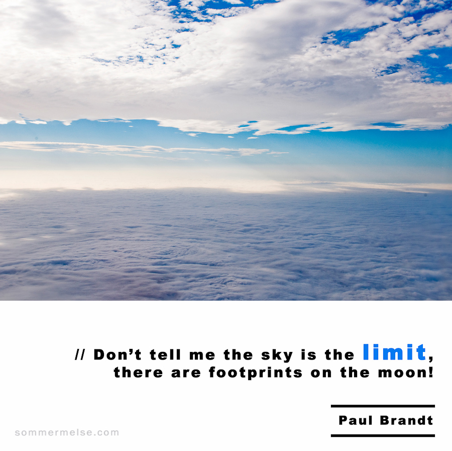 Visual Inspiration 365 - Don't tell me the sky is the limit, there are footprints on the moon! - Paul BrandtQuote // Don’t tell me the sky is the limit, there are footprints on the moon – Paul Brandt