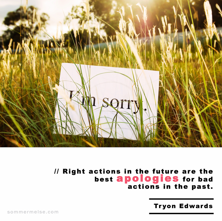 Quote // Right actions in the future are the best apologies for bad actions in the past – Tryon Edwards February 7, 2011 by sommer | 0 comment Leave a Reply Cancel replyYour email address will not be published. Required fields are marked *Comment *Name* Email * Website