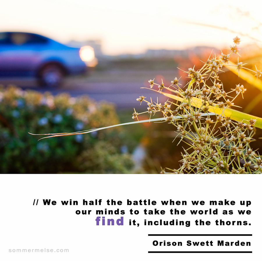 Quote // We win half the battle when we make up our minds to take the world as we find it, including thorns – Orison Swett Marden