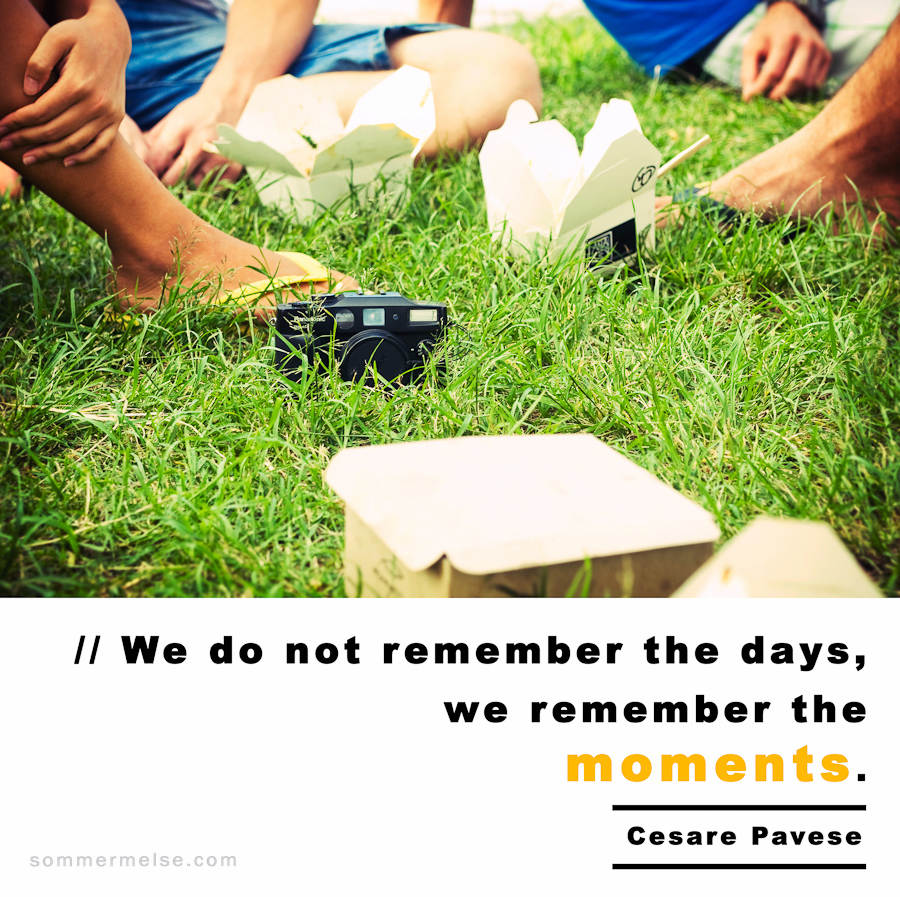 Quote // We do not remember the days, we remember the moments – Cesare Pavese April 29, 2010 by sommer | 1 Comment 1 Comment on Visual Inspiration 365 // 44 Em Tadros June 4, 2010 at 9:36 am (16 years ago) Haha I have a journal sitting right here beside me with that quote on the front cover 🙂 Love it. Reply Leave a Reply Cancel replyYour email address will not be published. Required fields are marked *Comment *Name* Email * Website