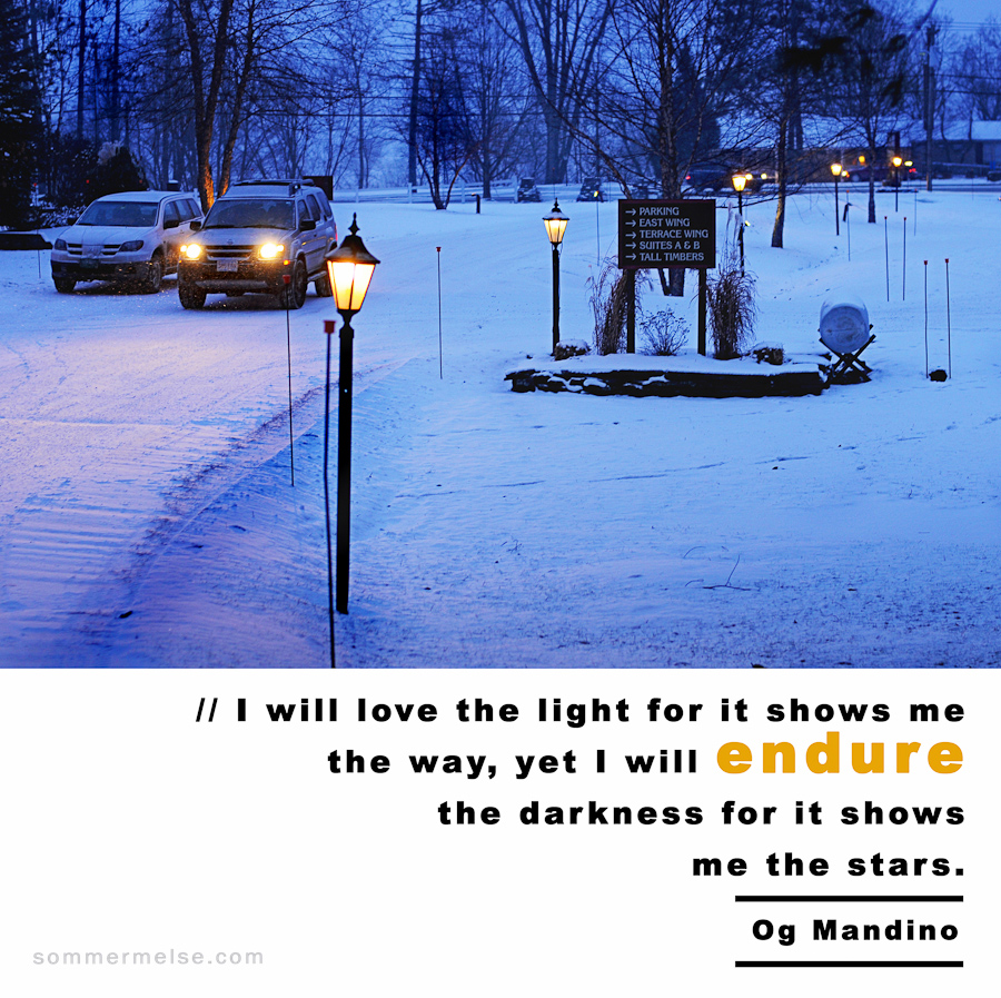Quote // I will love the light for it shows me the way, yet I will endure the darkness for it shows me the stars – Og Mandino