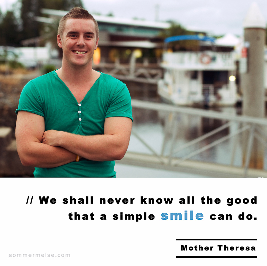 VISUAL INSPIRATION 365 Visual Inspiration 365 // 67 Quote // We shall never know all the good that a simple smile can do – Mother Theresa May 22, 2010 by sommer | 1 Comment 1 Comment on Visual Inspiration 365 // 67 D4C May 22, 2010 at 8:51 am (16 years ago) hahaha! Thats awesome! Love that quote! Reply Leave a Reply Cancel replyYour email address will not be published. Required fields are marked *Comment *Name* Email * Website